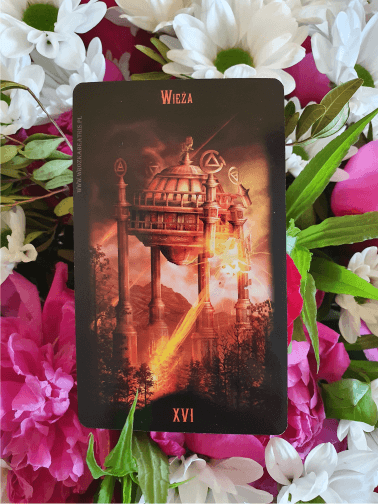 (XVI karta Tarota), związana z żywiołem Ognia, symbolizuje nagłe i transformujące zmiany. Ogień, spontaniczny i energiczny, podkreśla destrukcję starych iluzji na rzecz prawdy i odnowy.